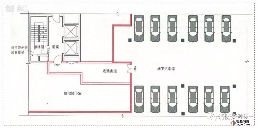 文末附規(guī)范爭(zhēng)議:汽車(chē)庫(kù)防火分區(qū)之間,以及汽車(chē)庫(kù)和其他民用建筑部分,能否共用疏散樓梯?