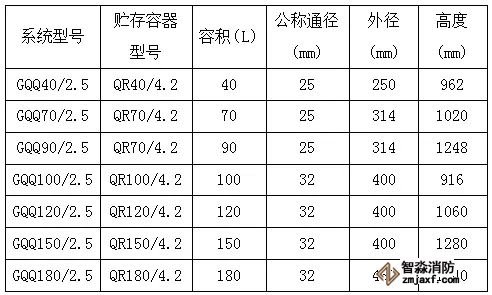 七氟丙烷氣體自動滅火系統(tǒng)分為有管網(wǎng)、無管網(wǎng)(柜式和懸掛)系統(tǒng),它們的儲瓶容器參數(shù)如下:
